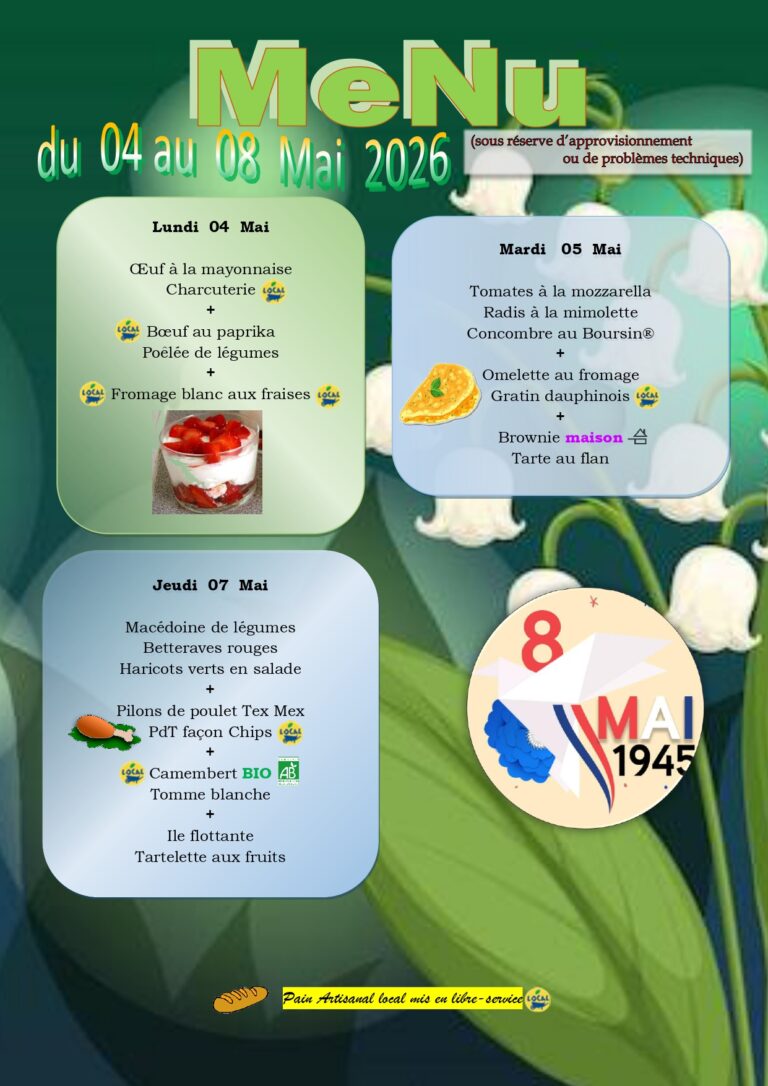 Menu de la Semaine du 27 avril 2026