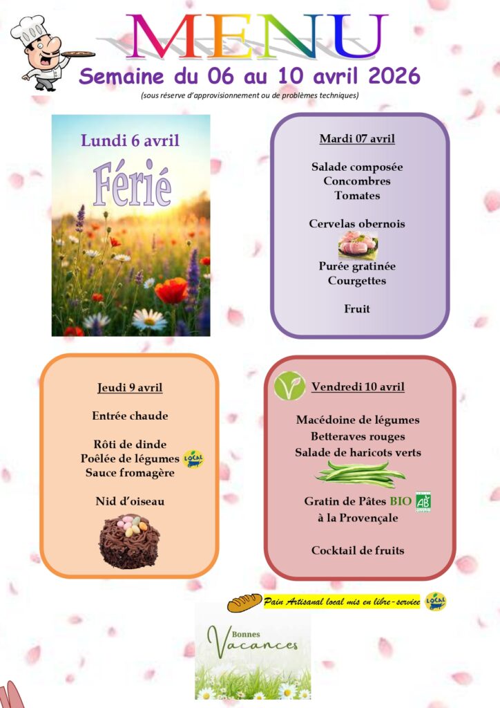 • Menu de la Semaine du 06 avril 2026